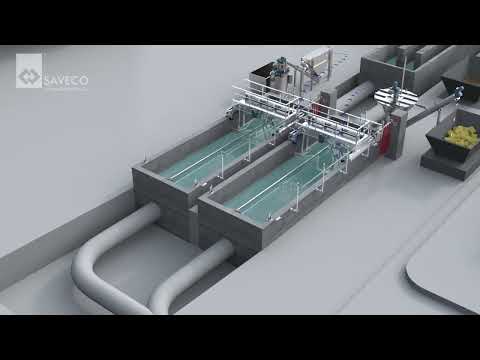 Tijdens bedrijf wordt het water naar de uitloop aan de voorzijde van de machine geleid, terwijl heet zeefgoed door een spiraal naar de achterzijde wordt geleid.